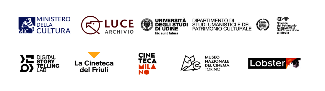 Con la collaborazione di [istituzioni parner]: Cineteca del Friuli; Associazione Culturale Quarantesettezeroquattro; AVI – Associazione Videoteche Mediateche; Soprintendenza Archivistica del Friuli Venezia Giulia; Ginko Film; La Camera Ottica, Università degli studi di Udine."